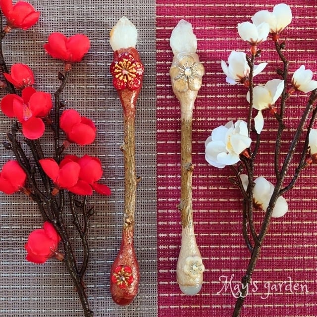 春迎えの杖・紅梅白梅~国産水晶クリスタルワンドセット