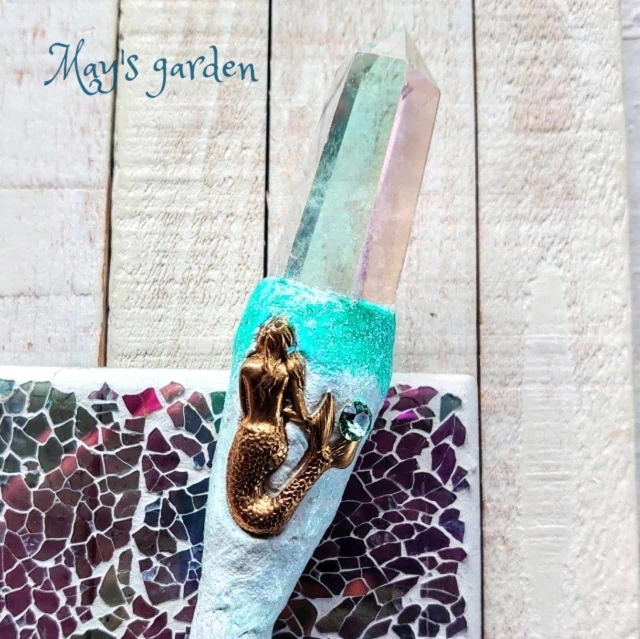 ホワイトとブルー、二色のクリスタルオーラを使った、虹の輝きいっぱいの贅沢なワンドです。